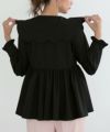 スカラップ襟フリルブラウス スカラップ ビッグカラー 裾フレア フリル袖 ペプラム ブラウス トップス 長袖 レディース 秋 【m715a】【予約販売】【送料無料】メ込